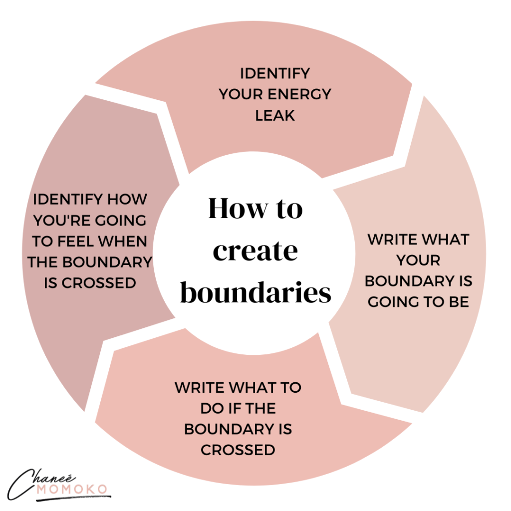 Check in with how you are feeling and what it is that you require each morning. “The answer could be quite practical, for example: hiring an accountant to help with your taxes to lessen your concern and overload, or it could be a selfcare activity, for example, getting an early night or getting a massage to counteract weariness.” “If an early night is required, the boundary might be letting your family know that you would like their help with clearing up dinner so that you can take a bath and go to bed early.” “If an early night is required, the boundary might be letting your family know that you would like to go to bed earlier.”