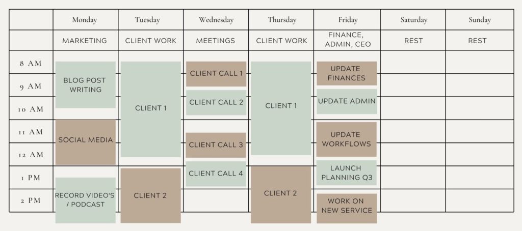 Timeboxing is one method for creating a full agenda, but there are other aspects of time management that are just as important. For the sake of maximizing your productivity, you should think about splitting not just your day but also your week as a whole. The key to success here is to give each day of work a different subject. Try collecting all of the related tasks together and marking them on a certain day rather than hopping from one task to the next on any given day.